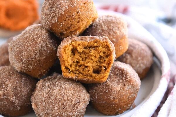These delightful mini pumpkin donut muffins are dipped in butter and rolled in cinnamon and sugar. They are soft, fluffy and so yummy!