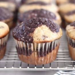 The delectable banana muffin batter is made infinitely better by the tasty dark ribbons of chocolate batter running throughout.