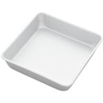 This cake bakes in an 8×8-inch baking pan. An aluminum or glass baking pan can be used.