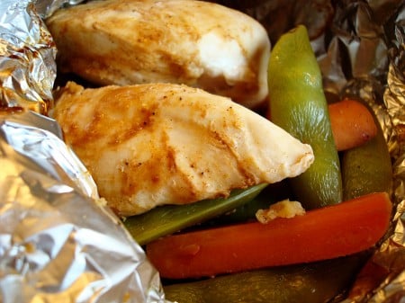 My kids thought it was ultra-cool that they each got their own foil packet for dinner and they ate everything right up. Apparently, peas taste better baked in foil.