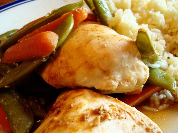 The chicken, after steaming in the oven, is tender as can be and the subtle taste of garlic and ginger is all this dish needs to be flavorfully perfect.