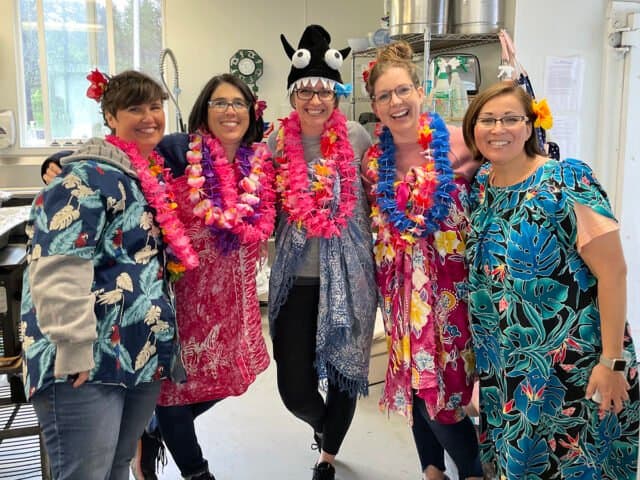 - Jill also convinced us to dress up each night in a themed (very simple!) costume. It was a last minute idea (literally the night before we were supposed to leave), so we didn’t necessarily plan the meals with a specific theme, but she made it work. This was entirely outside of my creative wheelhouse. I was confident planning the food. Costumes? Not so much. So she took the reigns and brought us all a variety of props to use…and the girls LOVED it. They thought it was so fun and hilarious. Lesson learned: Mel, be more fun. Also, invest in a muumuu.