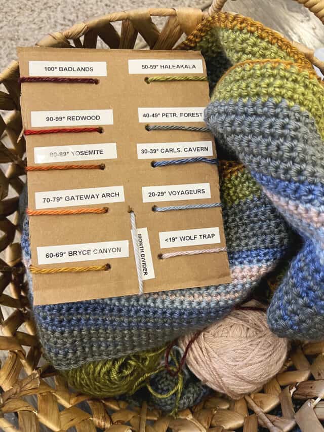 What is a weather blanket, you ask? (It’s a great question! I had no idea until a few months ago!) It’s a simple single-crochet blanket where each row represents the high temperature each day of the year.