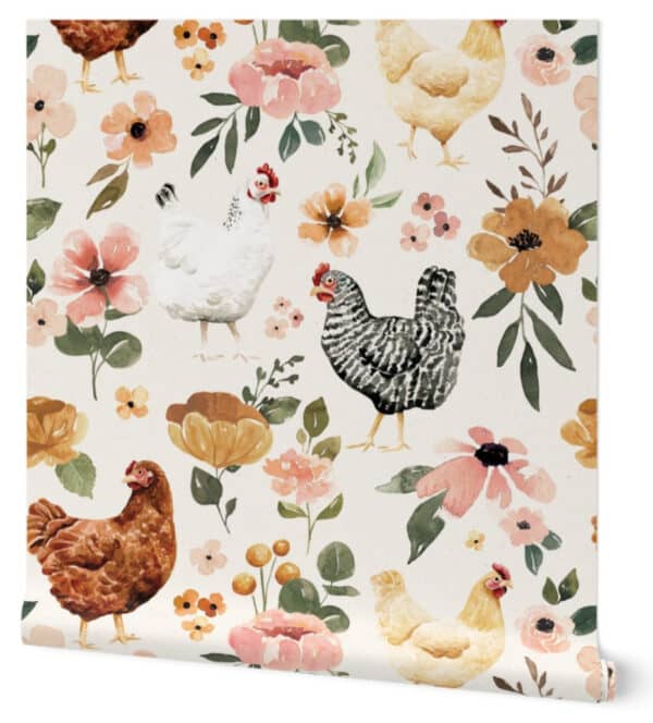 We are currently building on a small addition to reclaim the lost office space, and it should be done next week! The most exciting part of the new addition is this wallpaper that’s going up in the laundry room. 😉🐓