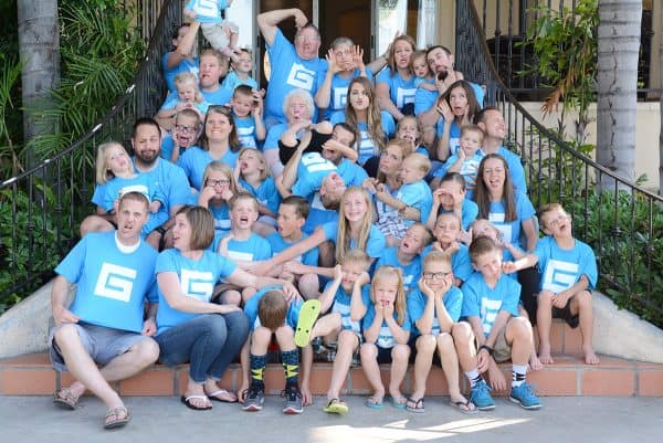 Family Reunions: human rubberband and/or slingshot. Poison Stump is always a favorite game/competition with the teens and tweens. My husband’s family did a round of skits where it was the same story (Little Red Riding Hood) told in different settings: Star Wars, Pride and Prejudice, and [can’t remember the other one]. So. Stinkin. Funny. One of the relays we did once was your team had to herd a chicken down around a cone and back without actually touching the chicken. Super hilarious. Also, cute G shirts!