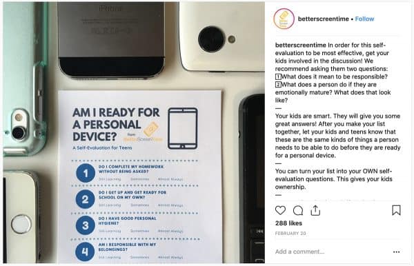 3. Screen Time Thoughts: Not only is it a challenging journey defining boundaries around screen time for kids, but, HELLO, adults (me!) struggle, too. I’m always looking for different resources to help me personally and my family as a whole navigate the murky waters of screen time/technology, and I LOVE the tips and guides over at Better Screen Time (on Instagram here). I’m using their quick guide to setting up a Family Technology Plan (not a cell phone contract!) for our family, and the self-evaluation guide for teens and phones that they have is really, really awesome.