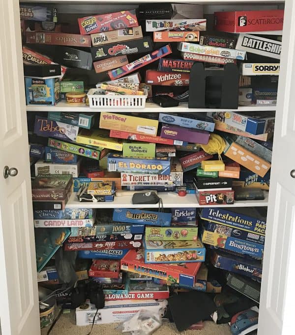 Your game closet is a great “I Spy” game as well. We bought Sleeping Queens (based off of your recommendation), and my kids have loved playing it all day, every day for spring break. They don’t even need me to help them, and it makes my card-game loving heart so happy! I went through my game and bed sheets closet and gave up on organizing either.
