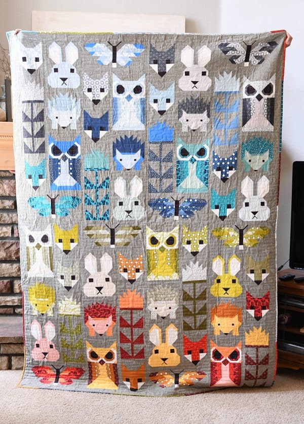 The other blanket I finally finished was this Fancy Forest quilt, pattern by Elizabeth Hartman. A couple years ago when I decided I wanted to learn to quilt (never had before), I chose this as my first quilt. Yes, you just go ahead and laugh at me, because everyone else in my real life did, too!
