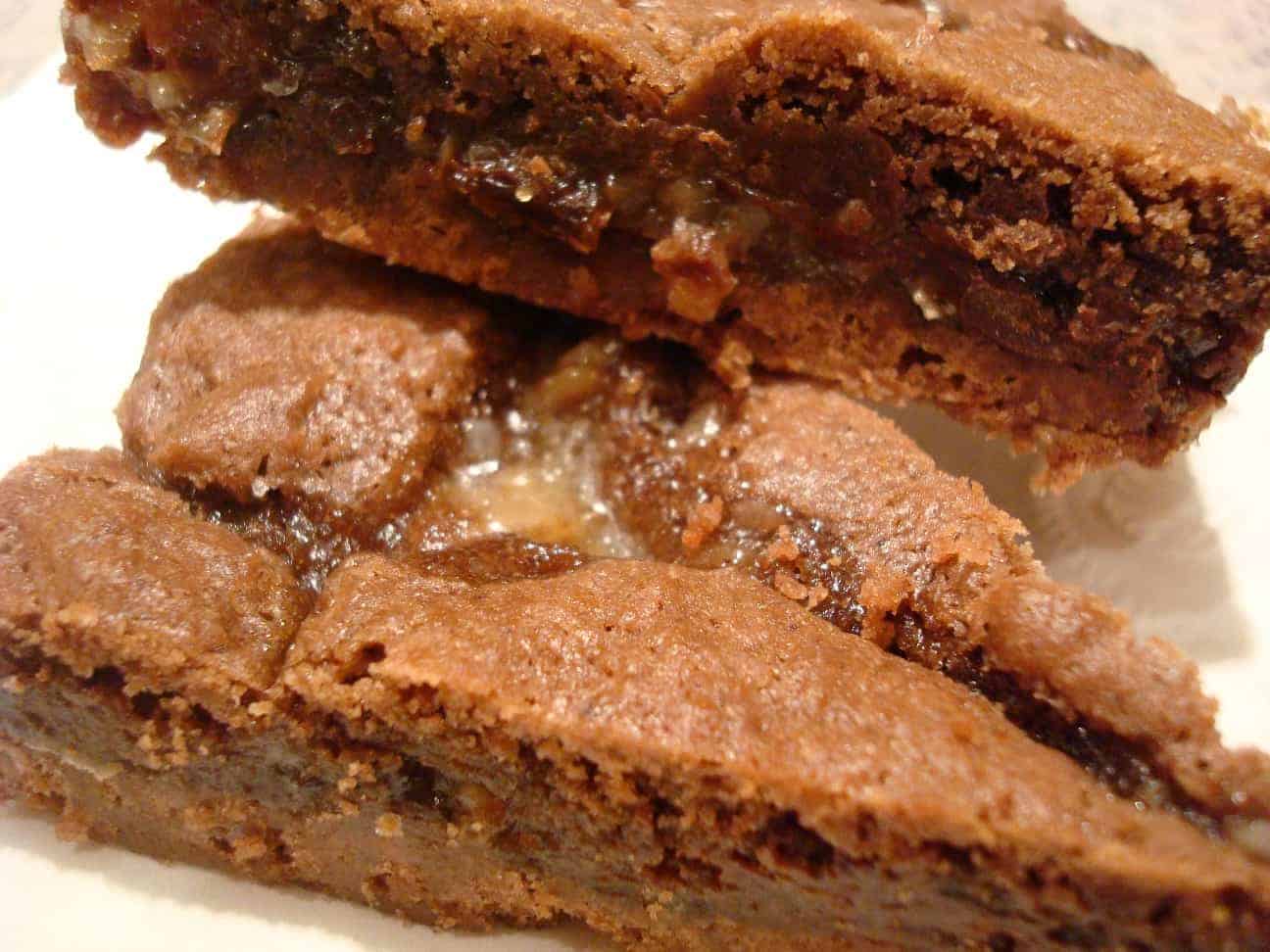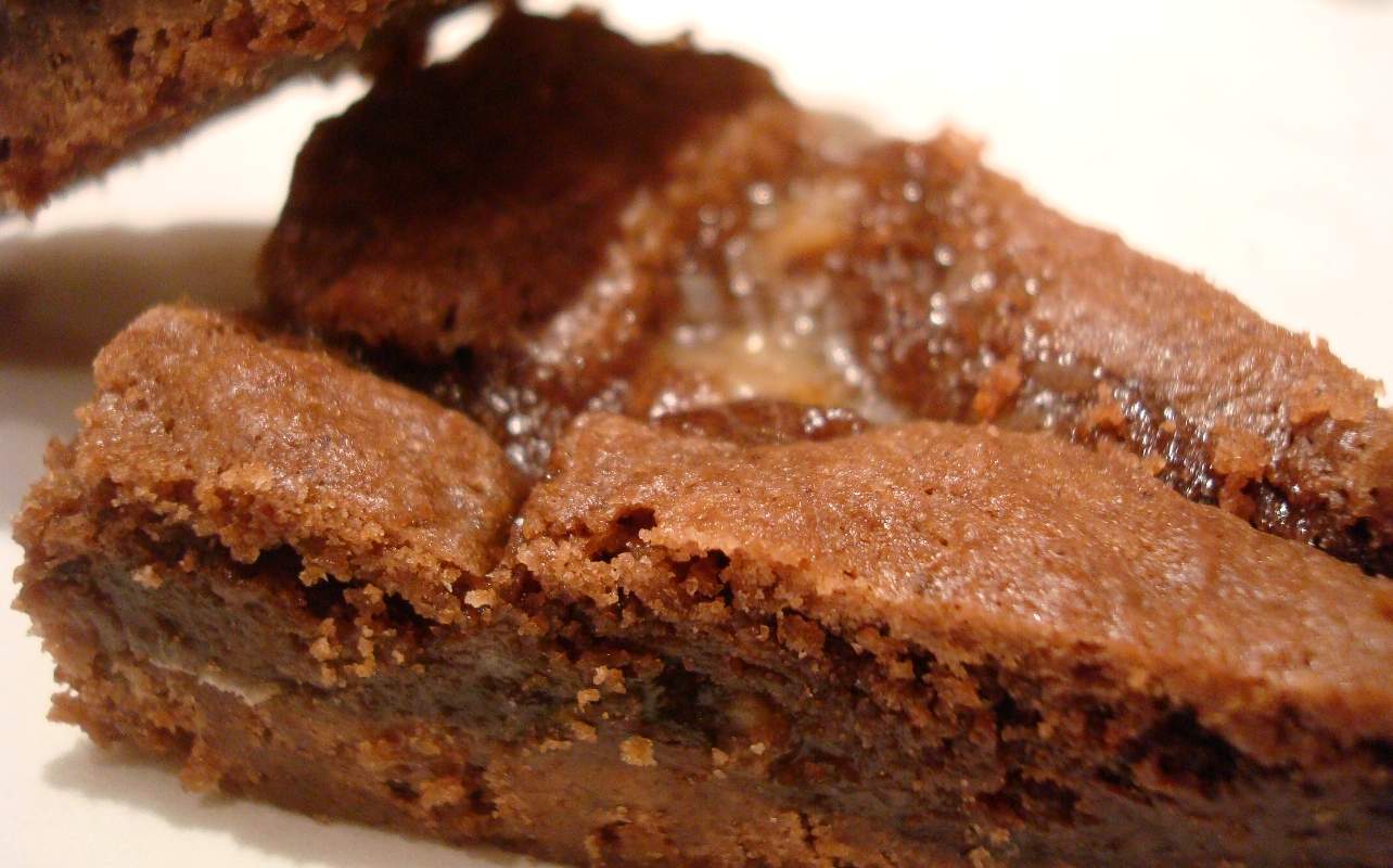 These brownies have a buttery, firm crust with extreme caramely, chocolatey, gooey softness layering on top.