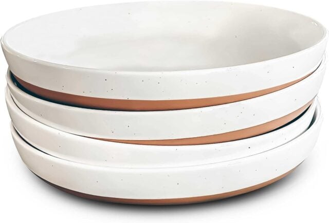 Pasta/Salad/Burrito Bowls: not only are these shallow bowls really cute, they are perfect for serving toppings (like, for taco night) and great for when dinner is a build-your-own type meal (burrito bowl, salad, pasta). I use them all the time! Another favorite, all-white shallow pasta bowl are these Sweese bowls.