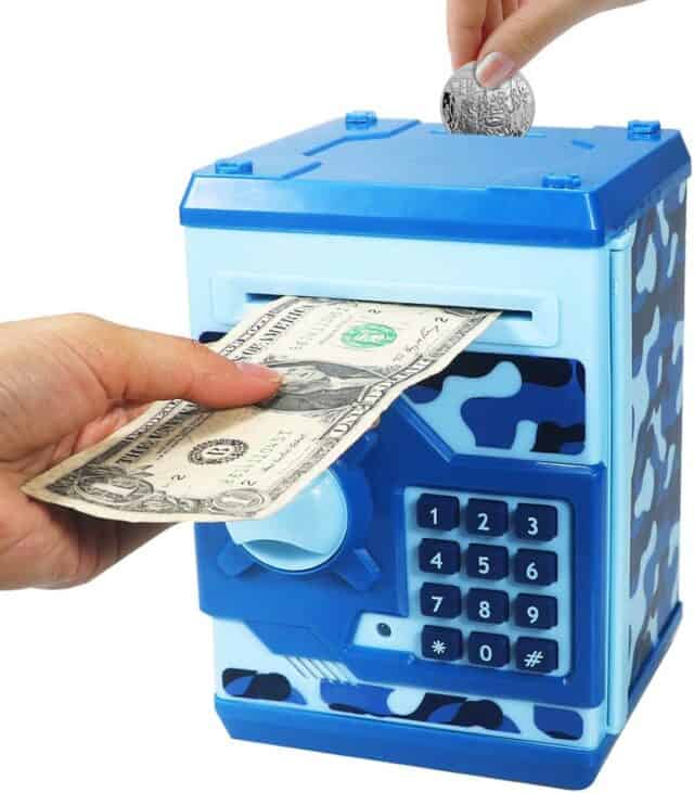 ATM Piggy Bank: this little money bank is not only adorable (comes in lots of colors), but it lets the kiddo set an electronic password (and it really works!). For a slightly more intense version, this ATM piggy bank from Lakeshore Learning is super fun. My sister’s kids have this one and love it!