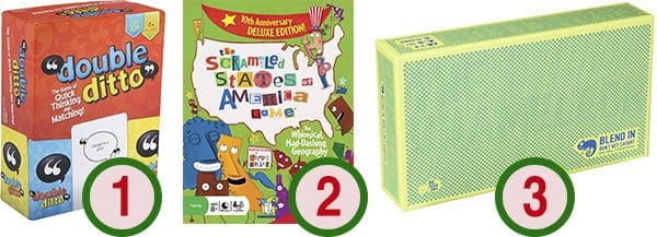 1. Double Ditto: this super simple (easy to explain) game provided at least 20 hours of entertainment at several family reunions/gatherings this summer. It’s fun to play with older kids , but the most fun was staying up super late playing with the adults. This is one of my favorite group games to play around the table!