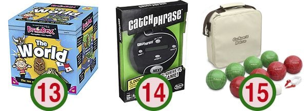 14. Catchphrase: another blast from the past, we recently introduced our kids to this game (and this new and improved Taboo game – did anyone else play and love these games??). It’s nearly impossible to find the original versions of either of these, but we love the new and improved ones. The new catchphrase doesn’t have as many categories as I remember the original one having, but it’s still fun. Both games require teams, so keep that in mind – great for convincing teenagers that playing games (not on their phones) CAN be fun. 🙂