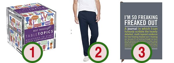 3. Freak Out Journal: this is a great gift for the anxiety-prone person in your life. Not only is it kind of lighthearted (as in, my sister and I both got a good laugh when I gave this to her – we are both too high stress for our own good) but it is also awesomely helpful with writing prompts to get feelings and stresses out of your head and onto paper. I love this little journal.