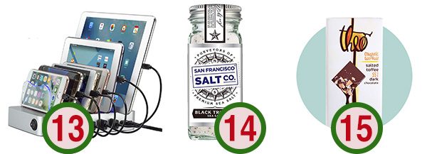 14. Truffle Salt: for the foodie in your life! This truffle salt is exotic…and yet ridiculously tasty on the most humble of foods (think: popcorn, potato chips, fried eggs). My brother sent me a jar of this, and it makes me feel all sorts of fancy standing at the counter in my PJs snarfing down my morning eggs. A little goes a long way, but if you or someone you know loves a touch of truffle flavor, this will be a hit!