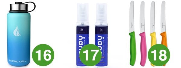 16. Insulated Water Bottle {aff. link}: I’ve had a real deal Hydroflask and now I own this super inexpensive (by comparison) Hydro cell water bottle, and I honestly can’t tell a difference. It’s amazing. I have the color pictured above – an ombre teal/blue and I love it. I keep it filled on my kitchen counter and use it at least 38 times a day. My kids each have saved up their money to buy one, too, and they use them for sports practices and road trips.