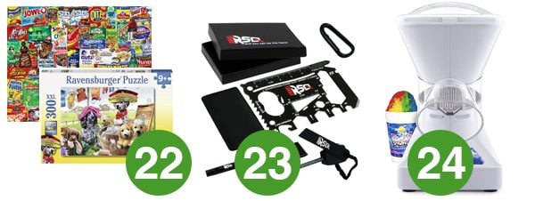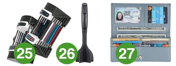 23. Wallet Tool {aff. link}: a fun stocking stuffer, this clever little gift has a credit card tool (these things are awesome if you haven’t heard of them) plus a fire starter, carabiner and emergency whistle (which is super loud, firsthand knowledge here!).