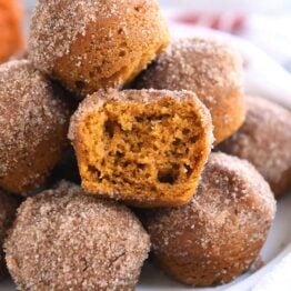 Completely irresistible, these amazing little muffins are like a pumpkin-flavored donut hole smothered in cinnamon and sugar. I dare you to eat just one!