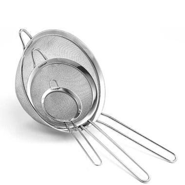 These fine mesh strainers are indispensable in my kitchen – I use them for washing fruit, draining pasta, straining pudding/custard, sifting dry ingredients.