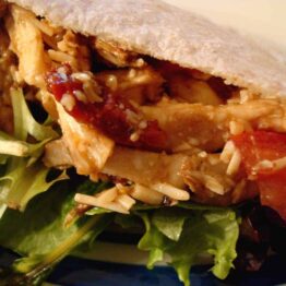 Shredded Chicken Pitas with Sun-dried Tomato Vinaigrette