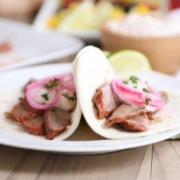 Really great recipe. The marinated steak, sour cream, and pickled onions were beautiful together! No leftovers tonight!!