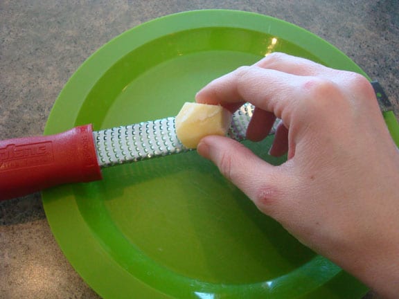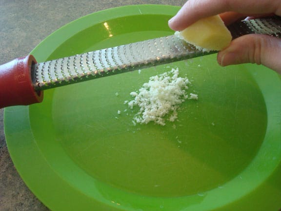The next part is simple – place the ginger on the rasp grater and start grating away!