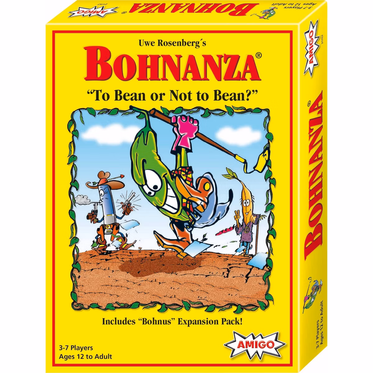 Bohnanza: This game takes a bit of time to learn…but once you do, it is intensely fun. There are add-ons, but we still have just the basic version and still love it (been playing it for years).
