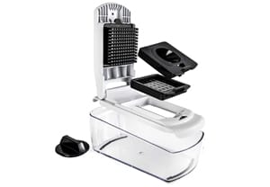 Rotary Cheese Grater: I use this cheese grater all the time; it’s not hard to clean – most of the pieces are dishwasher safe. I’ve found it even works on soft cheeses, especially if I don’t press hard with the insert and/or freeze the cheese for a few minutes before shredding.